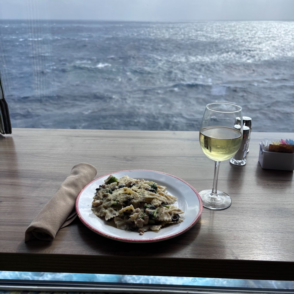 This is the age-old question. Honestly, I have yet to find a good e-SIM that works for me, so I stick with buying the ship’s Wi-Fi. It uses Starlink, and it works great in open water. I get the one-device plan since it is just me using it. I can switch between Wi-Fi on my laptop and my phone really easily, so when I am done working, I just switch the Wi-Fi to my phone, and vice versa. I actually like that I can’t get distracted by my phone apps while I’m working. I find that it makes me more productive.